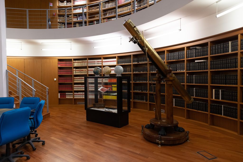 La parte storico-moderna che nel tempo è stata progressivamente trasferita presso la sede dell’Osservatorio di Roma ubicata nel comune di Monteporzio Catone (Castelli Romani), è costituita da un nucleo storico (post 1830) di circa 1000 volumi, da una sezione moderna che conta circa 3000 monografie a carattere prevalentemente specialistico e da un gran numero di periodici di astronomia e di pubblicazioni provenienti dalle principali specole del mondo, in parte acquistati e in parte ricevuti in regime di scambio. Anche l’ubicazione di una parte di questa sezione della Biblioteca merita una particolare menzione: essendo i volumi conservati nella cupola principale dell’Istituto, appositamente ristrutturata, è stato possibile creare uno spazio molto suggestivo e polifunzionale.