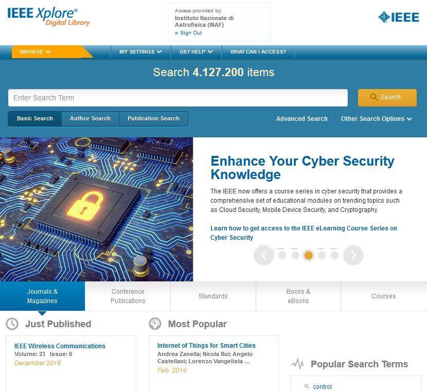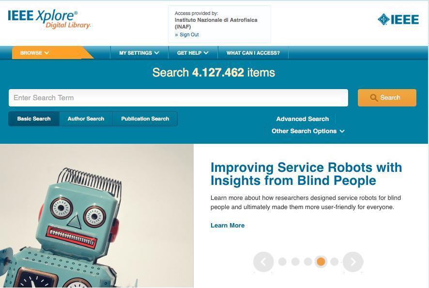 L'INAF ha sottoscritto l'abbonamento per l'accesso alla piattaforma IEEE/IET Electronic Library (IEL), la più importante risorsa nel settore dell'Ingegneria Elettronica, Elettrotecnica, Aerospaziale, Informatica, Telecomunicazioni, Automotive, Fisica e Astrofisica che permette agli interessati di tenersi aggiornati su tutte le scoperte nei settori dell’ingegneria a più alto