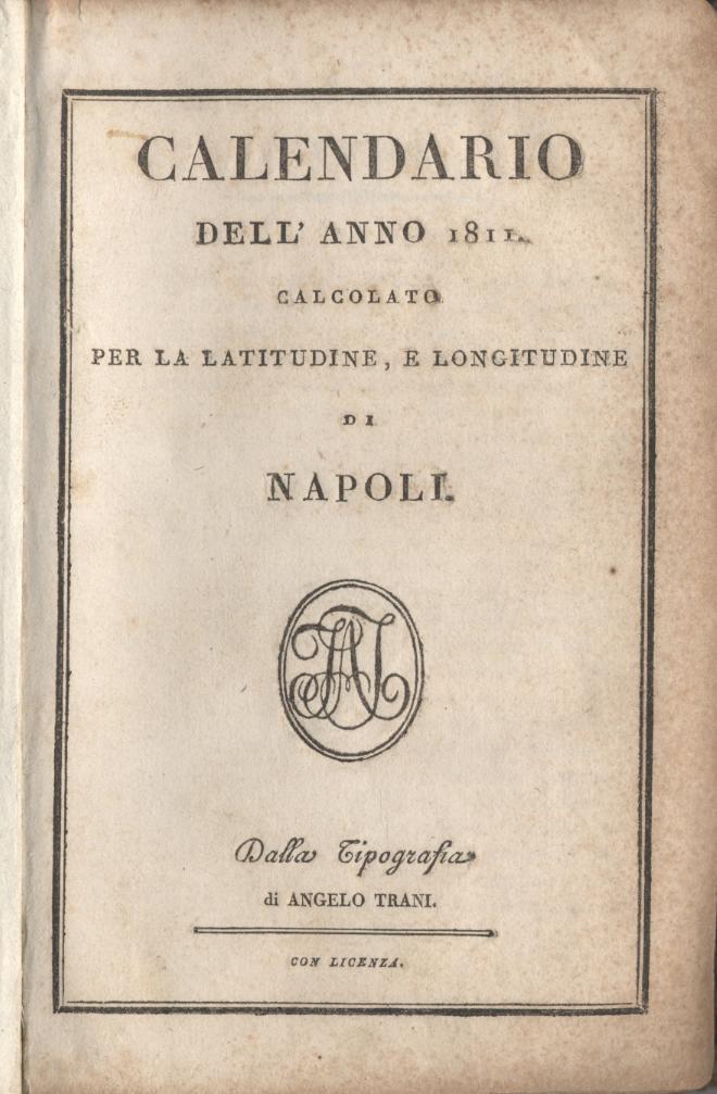 Calendario dell'anno ... calcolato per la latitudine e longitudine di Napoli